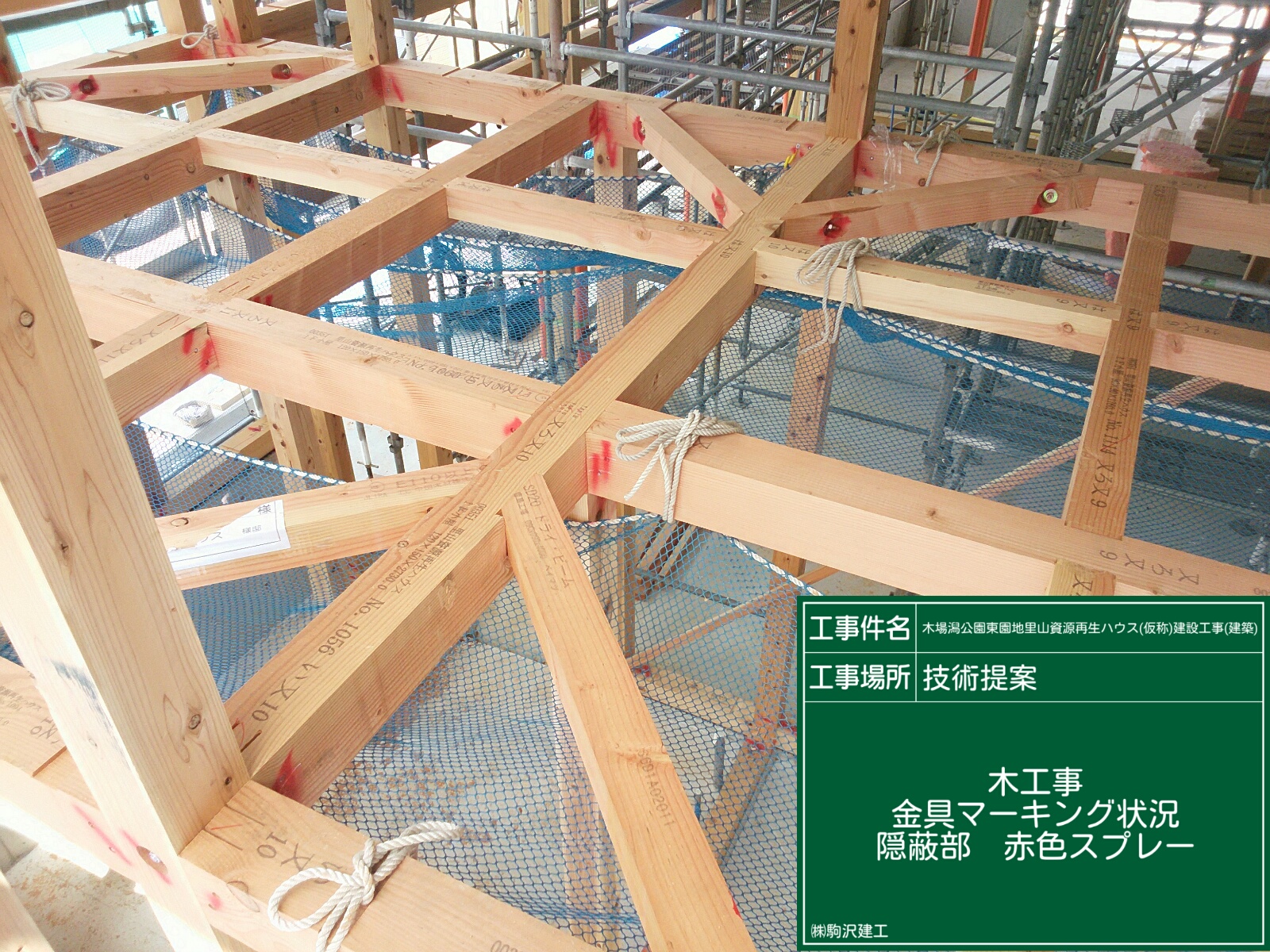 隠ぺい部分はいつものように赤スプレーでマーキングする。