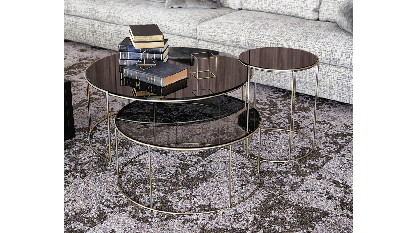 サイズの異なる2つのサイドテーブルは、少し重ねて配置することにより、リビングテーブルのような存在感にもなり、