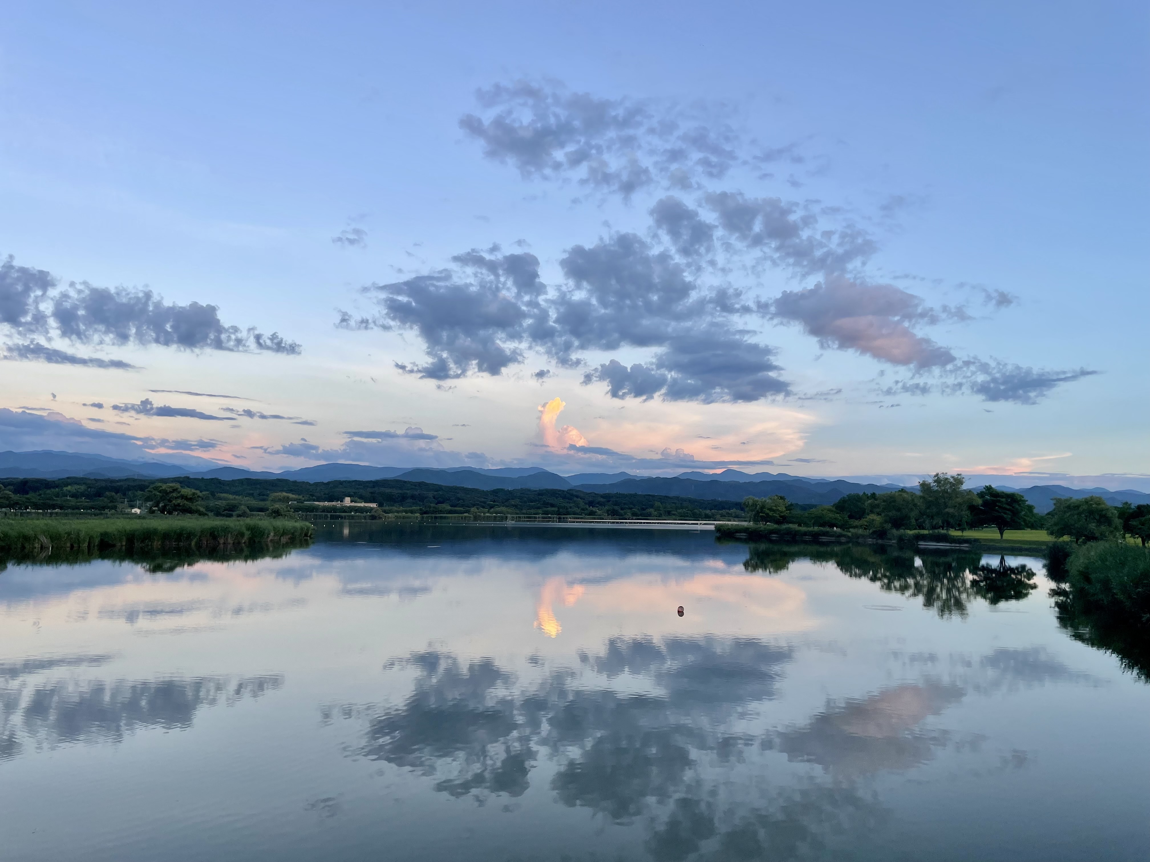 風もなく湖面が鏡のように反射し景色とのリフレクションがきれいでした。